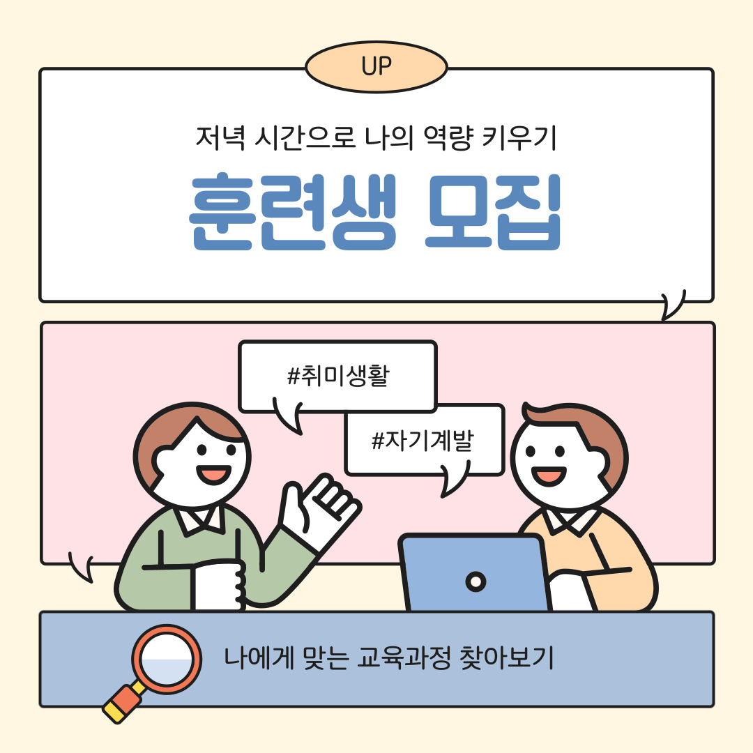 배움은 절대 배신하지 않습니다. 오늘의 저녁을 ‘성장’에 투자하는 순간, 여러분은 전혀 다른 곳에 서 있을 겁니다. 지금, 저녁 시간을 나만의 성장 프로젝트로 바꿔보세요.
